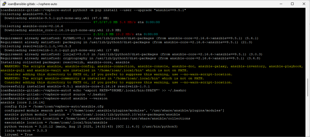 python3 -m pip install --user --upgrade "ansible==9.5.1"