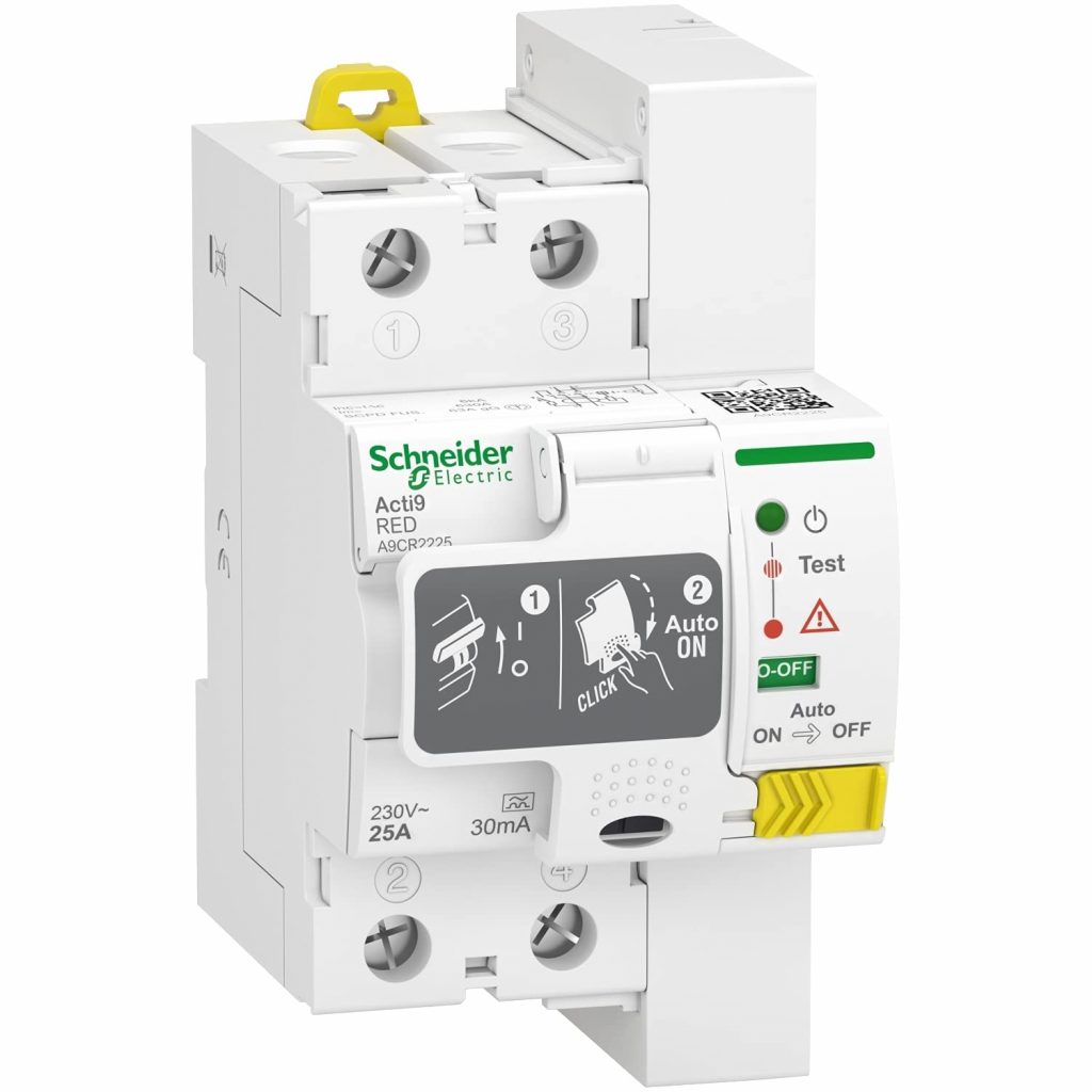 The most common failure point is the residual current device (RCD) tripping during a storm. Normally, that’s game over. To solve this, I installed the Schneider Acti9 RED (A9CR2225).